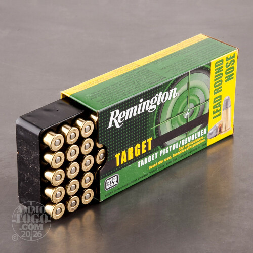 Each package contains 50 rounds of Remington Target Pistol/Revolver .38 Short Colt ammunition. Each factory fresh cartridge is loaded with a 125 grain lead round nose (LRN) projectile. Ideal for target shooting, the round nose profile creates an impressive ballistic coefficient and allows the bullet to cut through the air extremely well. This provides the type of precision accuracy necessary in serious competition.