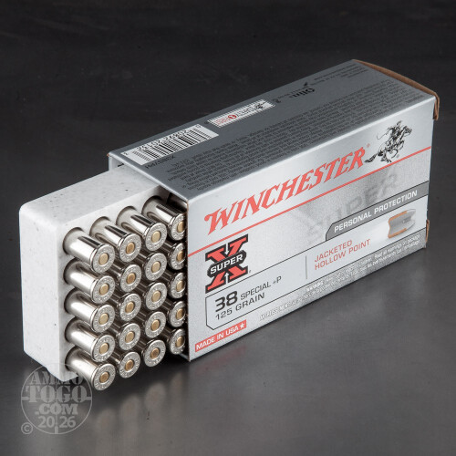 It’s a dangerous world out there. You deserve a personal defense load that’s not only going to effectively topple any shadowy forms looming in corners with crowbars, but also affordable enough to train with, too. That’s the notion behind Winchester’s Super-X brand of ammunition: solid performance, great value, and a whole lot of American tradition to back it all up.This is a 38 Special +P cartridge. (Please note that it’s +P -- you don’t want to run it through the wrong pistol and destroy said pistol, and possibly also your ability to open jars.) This round’s 125 grain jacketed hollow point projectile widens rapidly after impact for great energy transfer and the kind of wound channel that doesn’t get walked off any time soon. The bullet’s profile is engineered to promote both accuracy and controlled expansion. It’s a reliable result with every trigger pull that you’ll be confident staking your safety on. This round’s brass casing makes it reloadable, and its clean burning components will keep your trusty J-frame in better shape while you train.