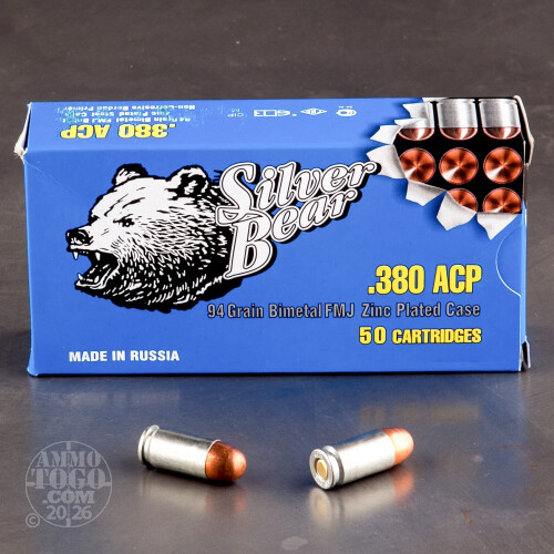 50rds - 380 ACP Silver Bear 94gr. FMJ Ammo Details