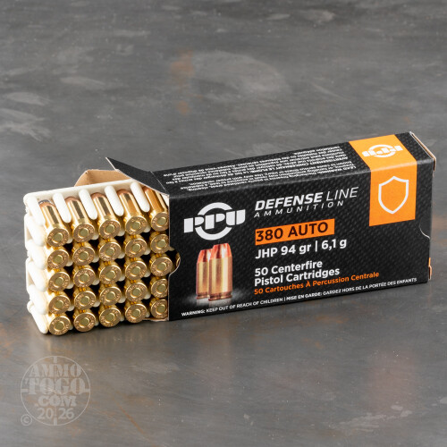 This is 380 Auto PRVI Partizan 94gr. Jacketed Hollow Point Ammo. PRVI Partizan Pistol Ammunition has extraordinary performance, excellent accuracy and above all, it is safe and reliable. This ammo is brass cased, boxer primed, non-magnetic and non-corrosive. Packaging is 50rds to a box. Muzzle Velocity: 951 FPS.