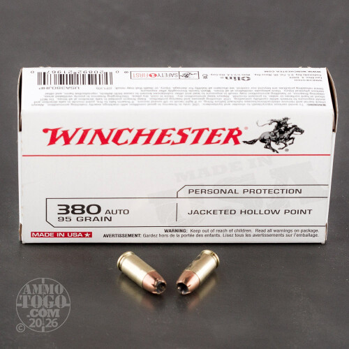 50rds – 380 Auto Winchester Personal Protection 95gr. JHP Ammo Details