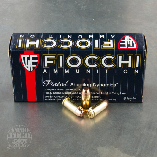 This .40 S&W ammunition from Fiocchi is an affordable target load suitable for both indoor and outdoor shooting. It uses complete metal jacket (CMJ) bullets, which are plated via electrolysis and have fully encapsulated cores. This results in reduced lead exposure risk when the round is fired. Each cartridge in this box of 50 fires a heavy 180 grain bullet and produces typical .40 Smith & Wesson ballistics. Fiocchi ammunition uses non-corrosive primers and brass cases.-