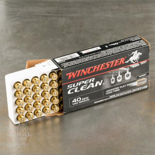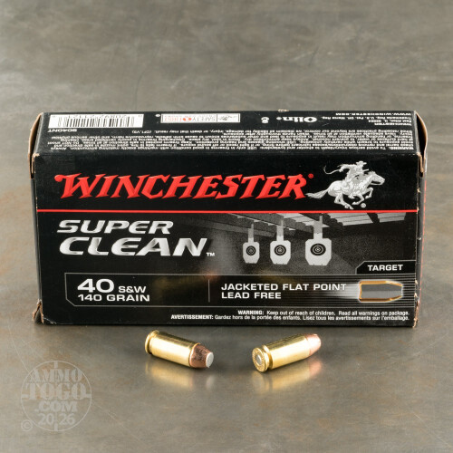 This Winchester 40 S&W ammo is a part of the Super Clean product line of range training ammunition. This ammo is completely free of toxic metals and materials, making it ideal for indoor range training. Using this ammunition is much better for the environment in two ways. First, it introduces no new lead contaminants into the area where you are shooting. Second, lead is environmentally hazardous to mine and refine, and this ammo completely skips that hazardous step.This 40 S&W ammo has a 140 grain jacketed flat point bullet. Because the bullet is a bit lighter than normal, this ammunition has another perk of having more manageable recoil than typical 40 S&W ammunition. This manageable recoil makes this ammo perfect for range training with people who are new to firearms and shooting sports in general. Each round uses a reloadable Boxer primed brass case.