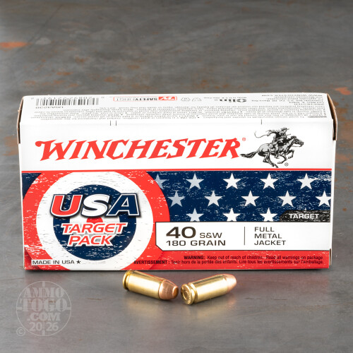 50rds – 40 S&W Winchester USA Target Pack 180gr. FMJ Ammo Details
