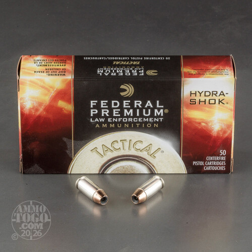 50rds - 40 S&W Federal LE Tactical Hydra-Shok 155gr. HP Ammo Details