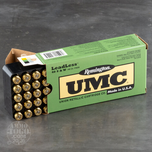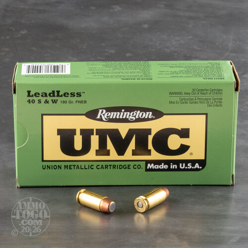 50rds - 40 S&W Remington UMC 180gr. Flat Nose Enclosed Base Leadless Ammo