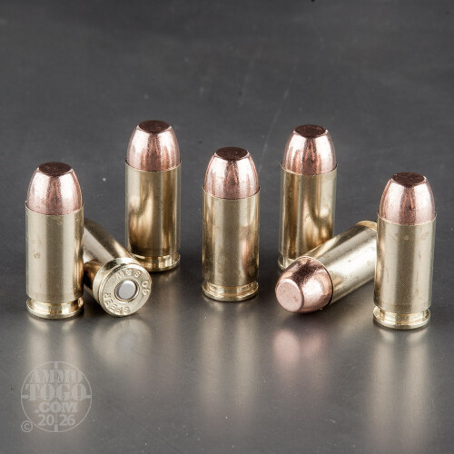Leaving the muzzle at a velocity of 1175 feet per second with a muzzle energy of 475 foot pounds, these .40 Smith & Wesson rounds are the ideal load for serious target and tactical practice.