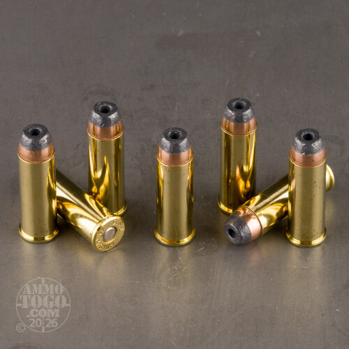 Your classic American, big bore revolver will get just the fuel it needs with these .44 Magnum rounds from Fiocchi. Fiocchi Munizioni is an Italian company with over a century and a half of experience making ammunition and components for the most strict competitive shooters and law enforcement agencies. The bulk of their ammunition sold in the U.S. is made at their facility in Ozark, Missouri. This brand of ammunition is recognized for an affordable price alongside consistent quality.Each round is built with a reloadable brass casing that is equipped with a clean-igniting Boxer primer and topped off with a semi-jacketed hollowpoint (SJHP) bullet. With a weight of 200 grains, the projectile is well-suited for flat-shooting, low-recoiling self-defense as well as hunting with lever-action rifles. The rounded shape easy slides into cylinders or loading gates while the exposed lead top and hollow cavity promote dependable expansion at a wide range of impact velocities. This mushrooming expansion prevents over-penetration and delivers momentum to vital areas for a more humane drop.