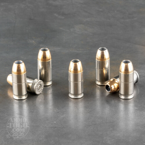 This 45 ACP cartridge from Federal’s Law Enforcement Tactical line of ammunition features the Minnesotan manufacturer’s own tried and true 230 grain Hydra-Shok projectile. This distinctive looking bullet has a center post jutting up from within its tip’s cavity, which ensures that the hollow point bullet’s ability to provide wide expansion won’t become impacted by becoming clogged up with fabric during penetration. The bullet’s hard metal jacket assures dependable penetration, and has notches to cause expansion to occur on a single axis. The Hydra-Shok excels at releasing the entirety of its energy within a soft target at an optimal depth, and it is unlikely to overpenetrate where it may cause harm to innocent bystanders.This round’s nickel plated brass casing is shiny, and thus makes it easier to check your chamber while you’re in a dark environment. That sleek nickel also facilitates smooth cycling, and helps to resist corrosion that could have compromised the cartridge’s powder.