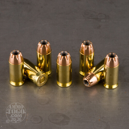 This is Fiocchi’s 45 Auto 200 grain jacketed hollow point load – exactly what you want for personal protection, but not unsuitable for target practice if you don’t want to fire your premium police grade 200gr JHP rounds at the range. Each cartridge’s nonmagnetic JHP clears the muzzle at a faster rate of 890 fps, slams into its target with ample kinetic energy, and proceeds to expand outward courtesy of its nose cavity and notched jacket. Simple yet effective!