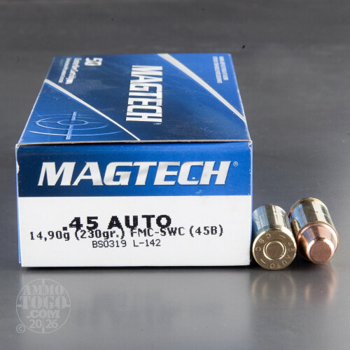 50rds – 45 ACP Magtech 230gr. FMJ SWC Ammo Details