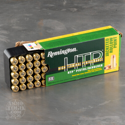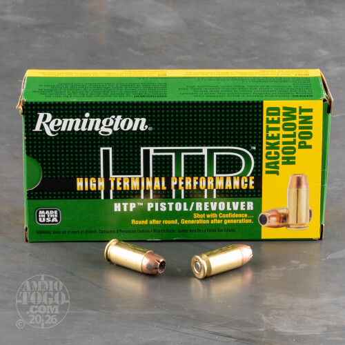 This is 45 ACP Remington High Terminal Performance Subsonic 230gr. Jacketed Hollow Point Ammo. Remington's HTP combines high quality brass, primers, and propellents with a variety of different projectile options. The HTP line is designed specifically for reliable expansion, penetration, and weight retention. This ammo is brass cased, boxer primed, non-magnetic and non-corrosive. It comes packed in 50rd. boxes. Muzzle Velocity: 835 fps.