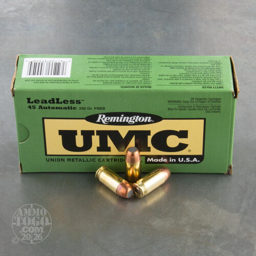 50rds - 45 ACP Remington UMC 230gr. FNEB Leadless Ammo
