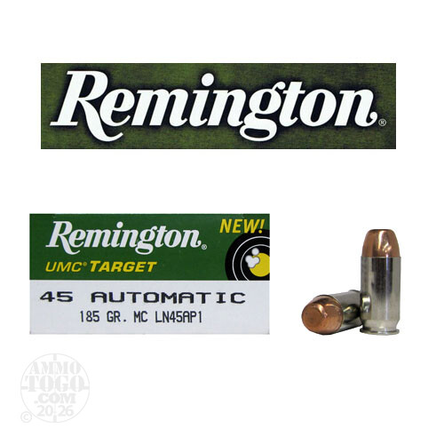 This is .45 ACP Remington UMC Target 185gr. Nickel Case FMJ Ammo. UMC handgun ammunition is made with Remington components right here in the USA, and provides shooters with the optimum blend of value and performance. UMC Target ammo has nickel plated shell cases to ensure smooth and reliable target shooting. This ammo is packed in 50rd. boxes, 500rds. per case.