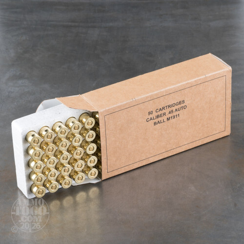 Experience the .45 ACP as it was in the many decades where the M1911 was the standard sidearm for American soldiers. This "Service Grade" mil-spec ammunition is a reliable, inexpensive load firing a heavy 230 grain full metal jacket bullet. As a standard pressure load, it produces stout but manageable recoil and will work well in virtually all guns chambered in .45 Auto. It is manufactured by Winchester in Oxford, Mississippi and uses non-corrosive Boxer primers and brass cases.-
