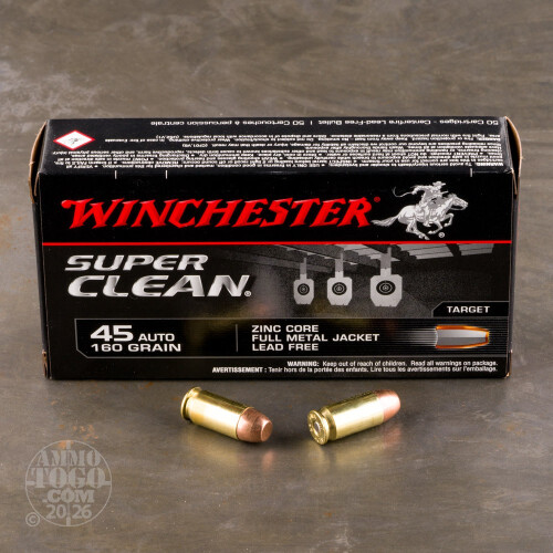 Leave a ReviewWhy Shooters and Hunters love or hate 50rds – 45 ACP Winchester Super Clean 160gr. Lead-Free FMJ Ammo