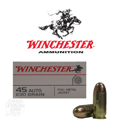 50rds - 45 ACP Winchester Target 230gr. FMJ Ammo Details