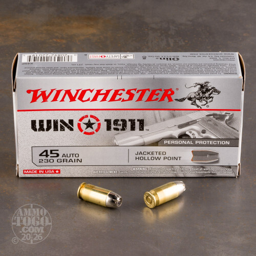 50rds - 45 ACP Winchester Win 1911 230gr. JHP Ammo Details