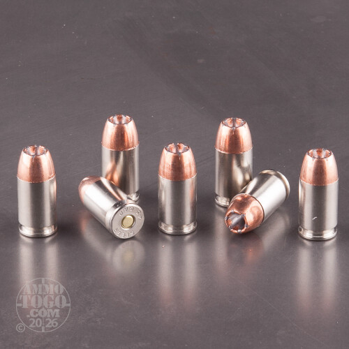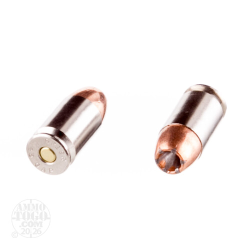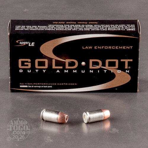 Play with whatever kind of ammo you like while you’re having fun at the range, but take no chances when you load up your everyday carry before setting out to where it could be dangerous. This 45 GAP cartridge by Speer is one of the most reliable on the market thanks to its 185 grain Gold Dot projectile. As its sturdy alloyed lead core is electrochemically fused to its copper jacket, the Gold Dot is not only accurate -- it is also able to retain virtually all of its weight as it penetrates resilient barriers and targets alike. This bullet’s hollow point nose cavity is the product of a series of precision die presses, and is programmed to release its energy as it expands to a reliable width at a measured rate.Speer outfitted this round with CCI’s sensitive and trustworthy non-corrosive primer, which along with its clean burning propellant charge will keep your pistol in better working order in between cleanings. This round’s nickel plated brass casing feeds and extracts with marked precision, and is able to shrug off the kind of corrosion that may have rendered a round inoperable.