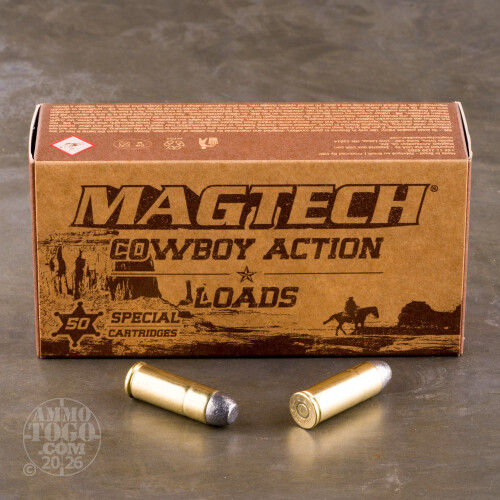 This is 45 Long Colt MagTech Cowboy Action 250gr. Lead Flat Nose Ammo. This ammo is specifically designed to be safe to fire in all 45 Long Colt revolvers and Rifles. It also meets the criteria of all cowboy action contest rules. It has a muzzle velocity of 761 FPS. This ammo is brass cased, boxer primed and 100% non-corrosive. It comes packed in 50rd. boxes.