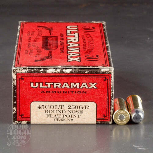 50rds - 45 Long Colt Ultramax 250gr. Round Nose Flat Point Ammo