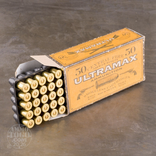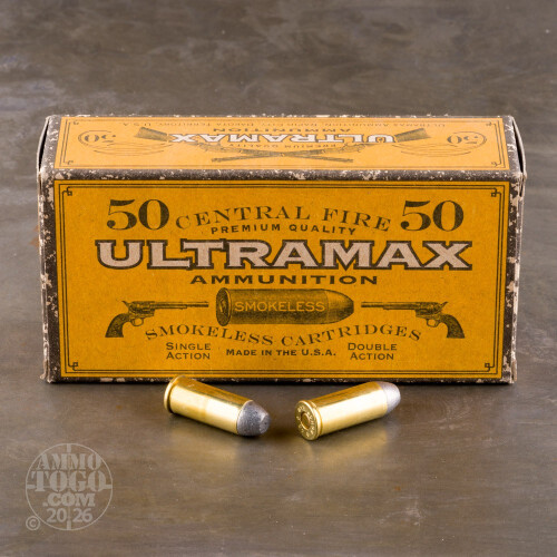 This is .45 Schofield Ultramax 180gr. Round Nose Flat Point Ammo. All Ultramax ammunition is shipped in unique 1800's inspired ammunition cartons. Muzzle velocity of 700fps. This ammo comes packed 50rd. boxes.