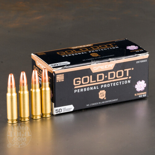50rds – 5.7x28mm Speer Gold Dot 40gr. JHP Ammo Details