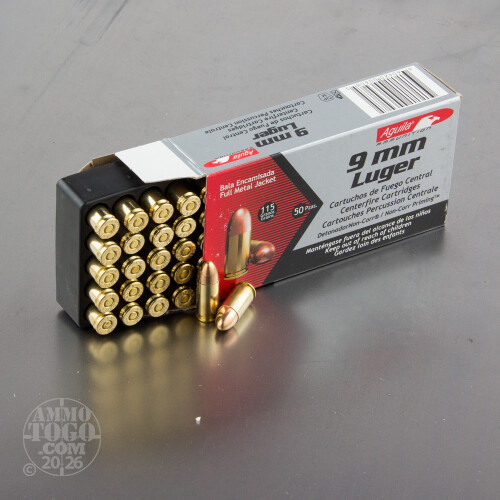 50rds - 9mm Aguila 115gr. FMJ Ammo Details