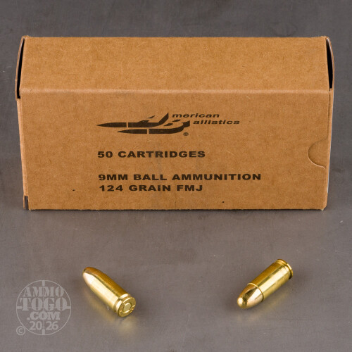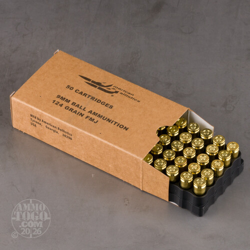 50rds – 9mm American Ballistics 124gr. FMJ Ammo