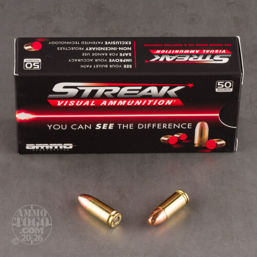 50rds – 9mm Ammo Inc. Streak 124gr. TMJ Non-Incendiary Visual Tracer Ammo Details