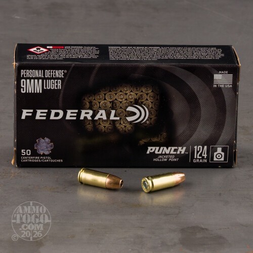 50rds – 9mm Federal Punch 124gr. JHP Ammo