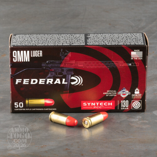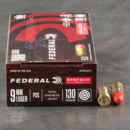 50rds – 9mm Federal Syntech PCC 130gr. Total Synthetic Jacket Ammo
