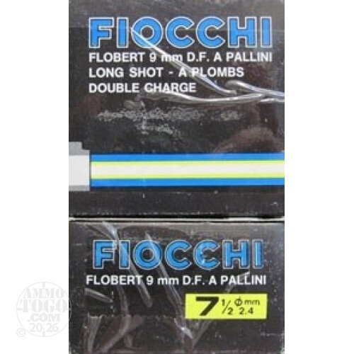 This is Fiocchi 9mm FLOBERT #7 1/2 LONG Shot... DOUBLE CHARGE. Made in Italy. This ammo has brass cases and is non corrosive. Comes packed in 50rds. per box.