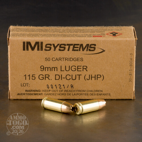 50rds – 9mm IMI 115gr. Di-Cut JHP Ammo