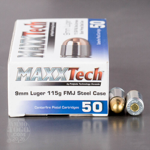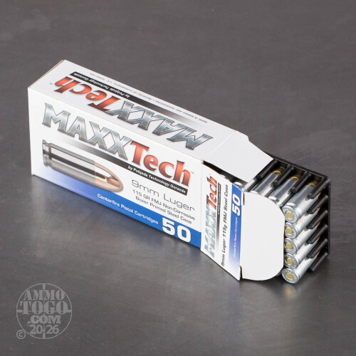 50rds - 9mm MaxxTech 115gr. FMJ Ammo