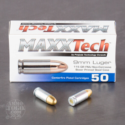 Maxxtech ammo in manufactured by Pobjeda Technology, a Bosnian based company. They produce affordable brass and steel cased ammunition that is exported to Europe and America. Pick up a few boxes of this competitively priced FMJ ammo and get out to the range soon.