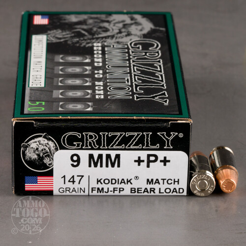 50rds – 9mm +P+ Grizzly 147gr. FMJ FP Ammo