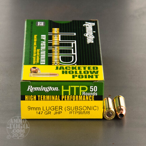 50rds - 9mm Remington HTP 147gr. JHP Subsonic Ammo