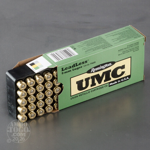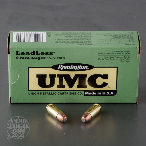 50rds - 9mm Remington UMC 124gr. Flat Nose Enclosed Base Leadless Ammo