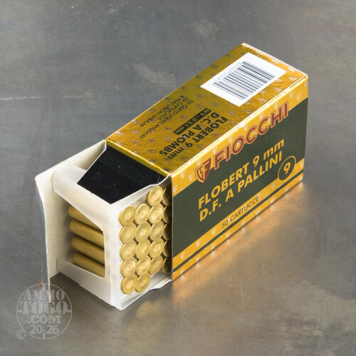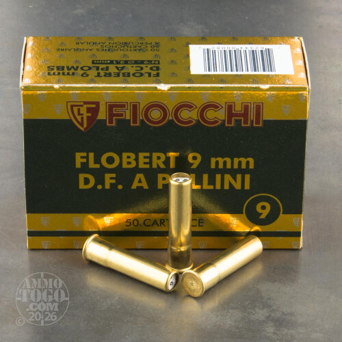 This is 9mm Rimfire Flobert Fiocchi 1 3/4" 1/4oz. #9 Shot Ammo. This ammo has brass cases and is non corrosive. It comes packed in 50rd. boxes. Muzzle Velocity: 600 fps.