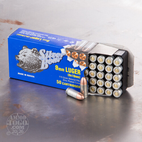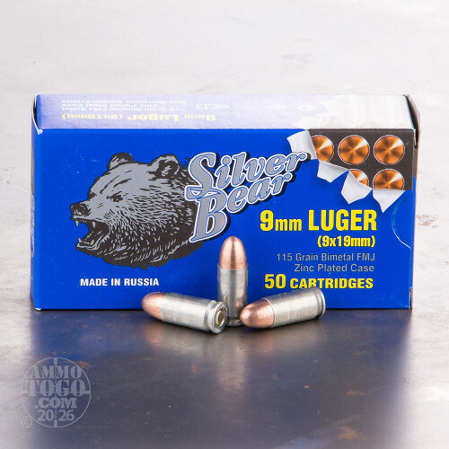 50rds - 9mm Silver Bear 115gr. FMJ Ammo
