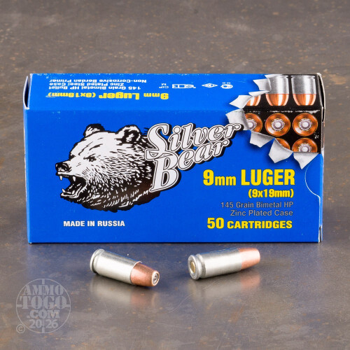 50rds – 9mm Silver Bear 145gr. HP Ammo