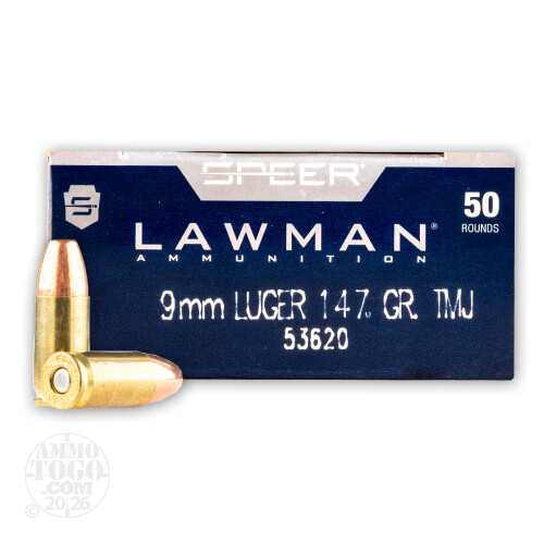 50rds - 9mm Speer Lawman 147gr. TMJ Ammo