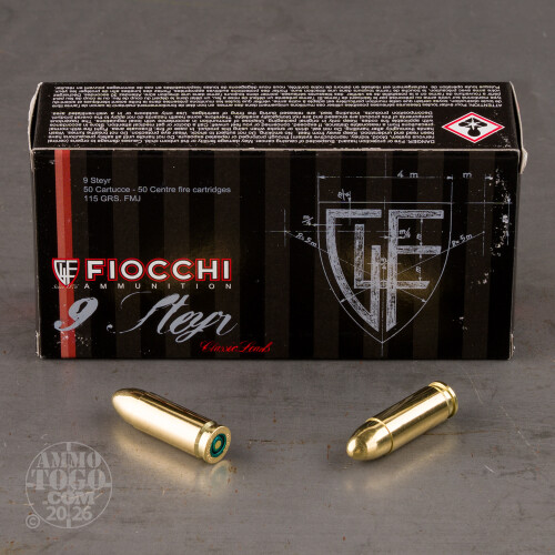 50rds – 9mm Steyr Fiocchi Heritage 115gr. FMJ Ammo
