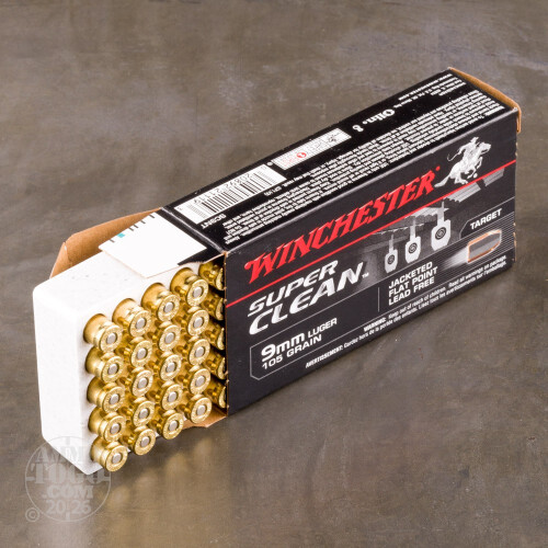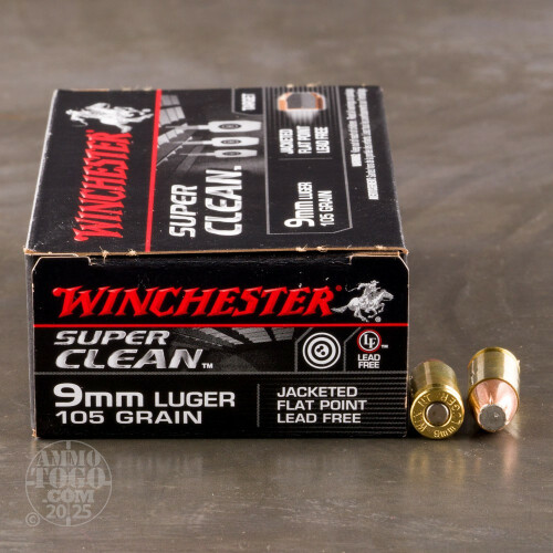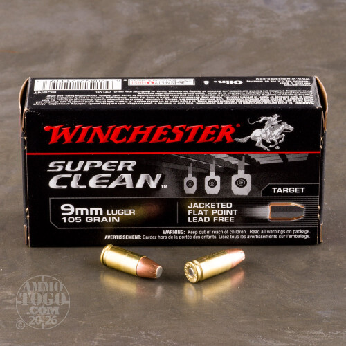 This is 9mm Winchester 105gr. Super Clean Non-Toxic Jacketed Soft Point Ammo. This ammunition has a specially designed tin core bullet that performs like lead for superior accuracy. Ideal for ranges that don't allow lead. Winchester ammo is proven quality ammunition. This ammo comes packed in 50rd. boxes.