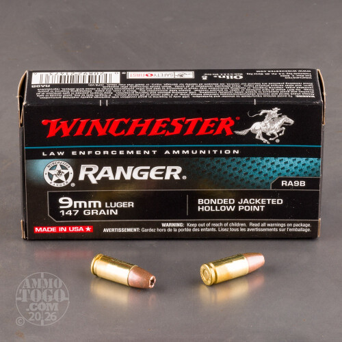 50rds - 9mm Winchester Ranger Bonded 147gr. HP Ammo Details