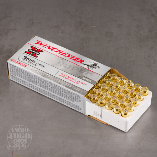 50rds - 9mm Winchester Super-X 147gr. Brass Case FMJ Ammo