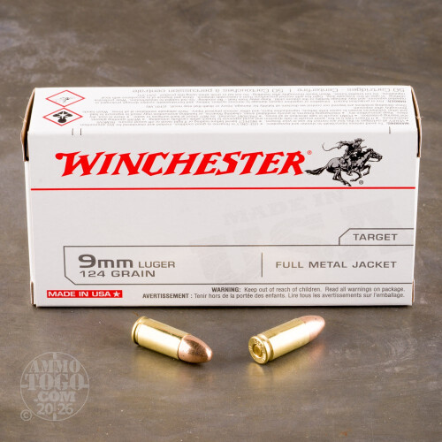 50rds - 9mm Winchester USA 124gr. FMJ Ammo