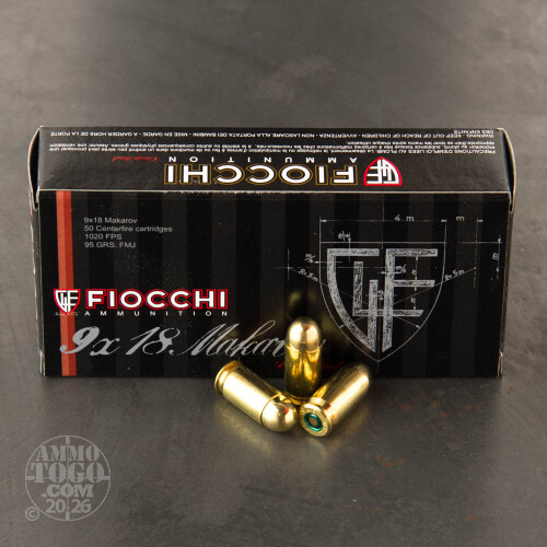 This is 9x18 Makarov Fiocchi 95gr. Full Metal Jacket Ammo. The development of these products focused on the achievement of synergy between shooter, firearm and ammunition. Fiocchi has successfully met and surpassed this goal with its pistol shooting dynamics line. The high volume shooter will be pleased with the balance created between reliability, power, precision and affordability. This ammo is 100% reloadable, brass cased, and boxer primed. This ammo comes packed in 50rd. boxes.