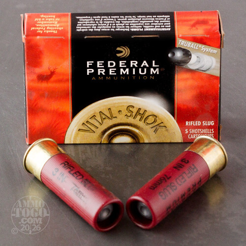 This is 12 Gauge Federal Premium 3" 1oz. Maximum Truball Rifled Slug Hollow Point Ammo. The revolutionary Truball rifled slug system provides the most accurate smoothbore slug. The TruBall Rifled Slug uses a simple plastic ball between the wad and slug to centers the slug in the barrel for extremely accurate results. Consistent group to group performance is the result (up to 75% improvement). This ammo comes packed in 5rd. boxes. Muzzle Velocity: 1700 fps.